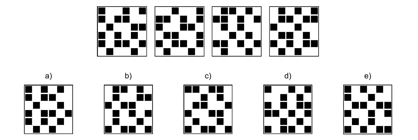 Body: 1Kategorie: Oddíl předpokladů ke studiu48. Který z obrazců a-e NEZAPADÁ do žádného ze vzorů?