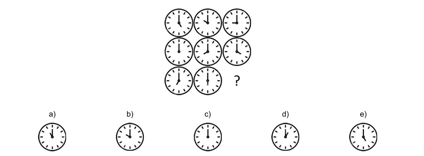 Body: 1Kategorie: Oddíl předpokladů ke studiu32. Který z ciferníků patří na místo otazníku?