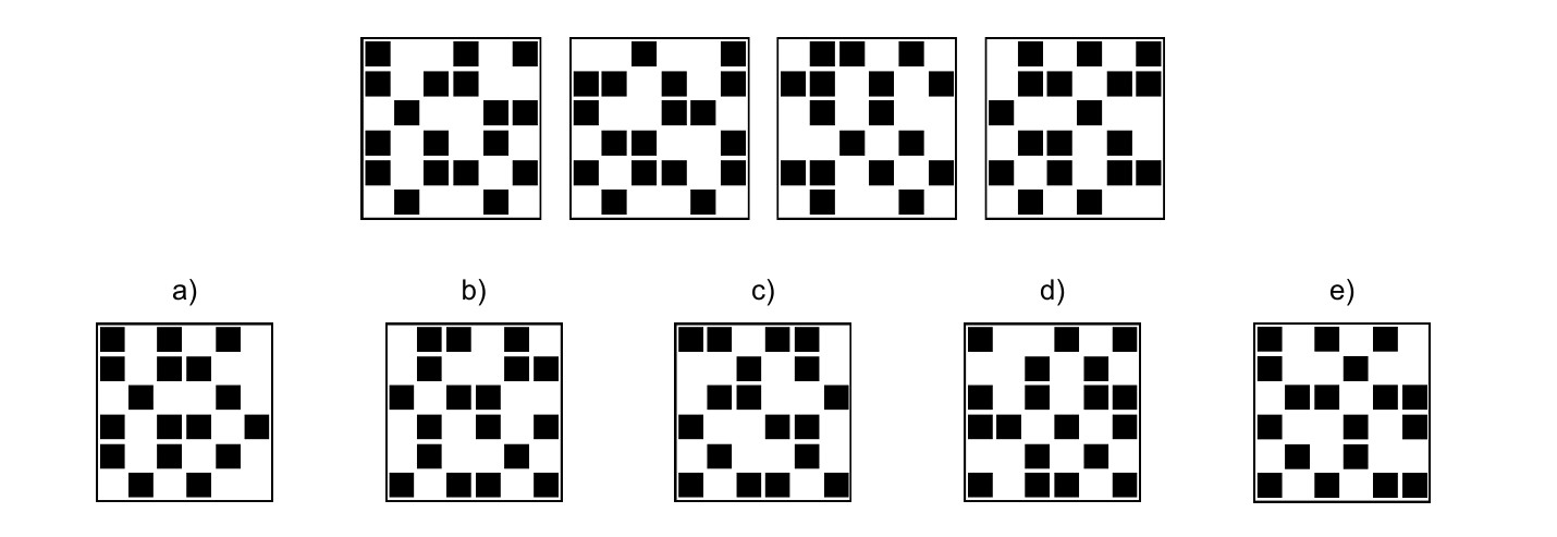 Body: 1Kategorie: Oddíl předpokladů ke studiu35. Který z obrazců a-e NEZAPADÁ do žádného ze vzorů?