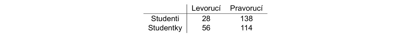 Body: 1Kategorie: Oddíl předpokladů ke studiu57. Následující tabulka obsahuje počty praváků a leváků mezi studenty a studentkami na střední škole. Které z následujících tvrzení je na základě této tabulky NESPRÁVNÉ?