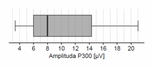 Body: 1Kategorie: Statistika53. Krabicový graf znázorňuje 12 různých naměřených hodnot amplitudy evokovaného potenciálu P300. Kolikrát byla naměřena menší hodnota než 6 µV?